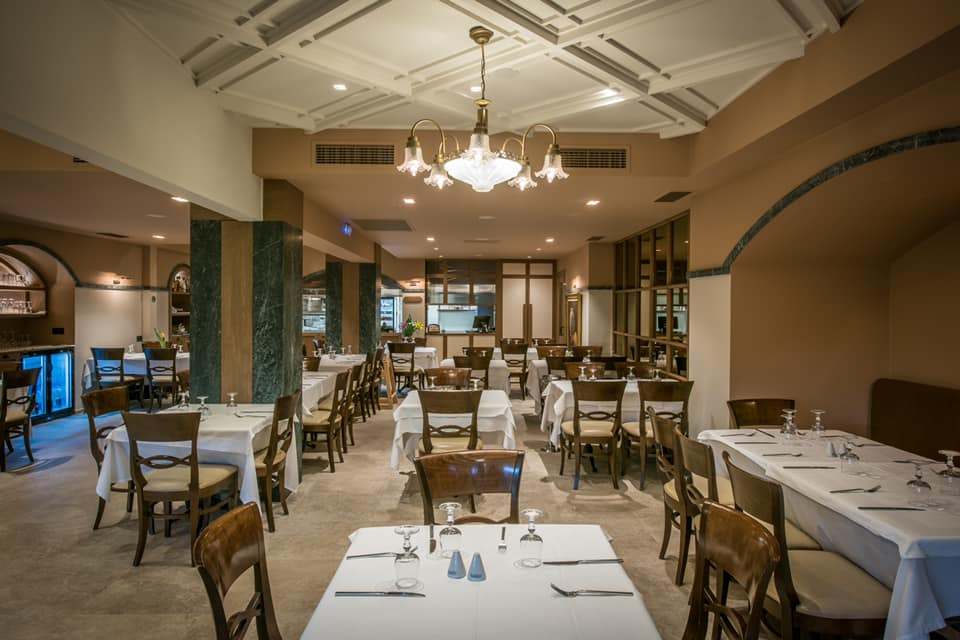 With more than 40 years of history, the restaurant "Kyriakos" belongs to the third generation of the same family, which continues to maintain tradition and high quality in every dish it serves. Recently renovated, the new aesthetic was designed to offer an elegant dining experience. The new design includes arches that create a sense of privacy for each table, while hidden lighting creates a pleasant atmosphere. Tables are set with white tablecloths and the well-polished cutlery and glasses shine. The result is a classic and timeless style that brings out the glamour and elegance of the space. Whether you are looking for a quality meal , or a sophisticated space for a business meeting, it promises to meet your every need with excellent food and impeccable service to the sound of jazz and lounge music.