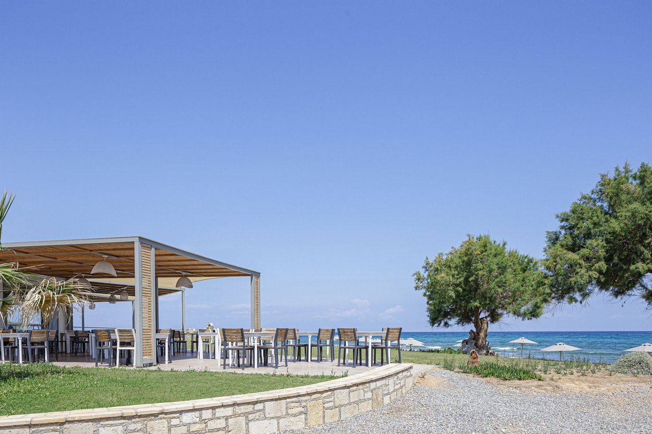 Διαθέτει έναν μεγάλο εξωτερικό χώρο που θυμίζει βεράντα ενώ περιβάλλεται από κήπο με γκαζόν με μονοπάτι που οδηγεί στην παραλία!Το μενού είναι επικεντρωμένο στη μεσογειακή κουζίνα με συνταγές φτιαγμένες με μέγιστη προσοχή στην ποιότητα των υλικών και στη λεπτομέρεια. Τα κρασιά, ντόπια και από διεθνή αμπελώνα, έχουν επιλεγεί προσεκτικά για να συμπληρώσουν τα πιάτα  και να προσφέρουν μια ολοκληρωμένη πρόταση για αυτό το γαστρονομικό ταξίδι!