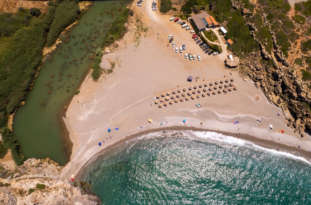 Geropotamos Beach, situated beneath the prominent bridge, is one of the scenic coastal gems visible when driving along the Heraklion-Rethymno and Rethymno-Heraklion routes. Located approximately 20 kilometres east of Rethymno, this picturesque beach can be found alongside the Geropotamos River.