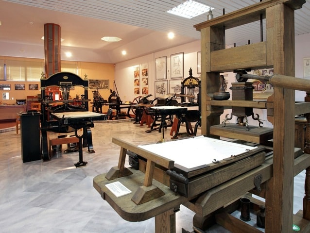 anniversary in 2015, it unveiled yet another hall housing rare publications, engravings, woodcuts, and more. Since 2012, the Museum has been a member of the Association of European Printing Museums. In 2016, it received a nomination for the prestigious European Museum of the Year 2016 award (EMYA 2016). This unique museum offers an interactive tour, narrating the fascinating history of Typography. Visitors have the extraordinary opportunity to experience hands-on printing on old presses and discover the often-overlooked human effort and intelligence that underlie every printed text.