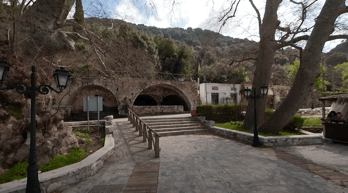 The Old Plane Tree in the square is regarded as the oldest and most majestic plane tree in Crete and one of the largest in Greece. With a trunk circumference of about 24 metres, it is estimated to be 2,400 years old. Its massive stature is characterised by enormous branches and dense foliage that blankets the entire village square.