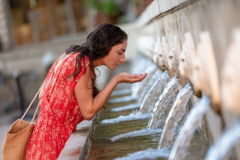 The visitor can't resist and often bends down to taste some of this refreshing water.