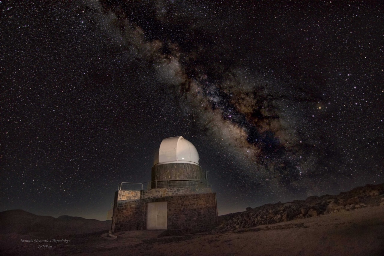 The Skinakas Observatory is equipped with three telescopes, each with a mirror diameter of 1.3 metres, 0.6 metres, and 0.3 metres.