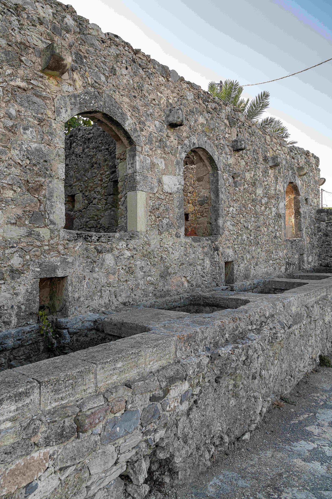 During the Venetian rule in Crete, the Venetian wine presses in Kenourio Chorio were owned by feudal lords. These lords prohibited the local inhabitants from constructing their own wine presses, thus ensuring their dependence on the existing ones. As part of this arrangement, the villagers were required to use these presses and give a portion of the grape juice as payment to the lords. The wine presses themselves consist of three large stone structures, each equipped with a vessel for collecting the grape juice. These three wine presses, along with the accompanying vessels, are integrated into a single building. The façade of each wine press features a spacious arched window, which served as an entrance and exit for the individuals who operated the presses.