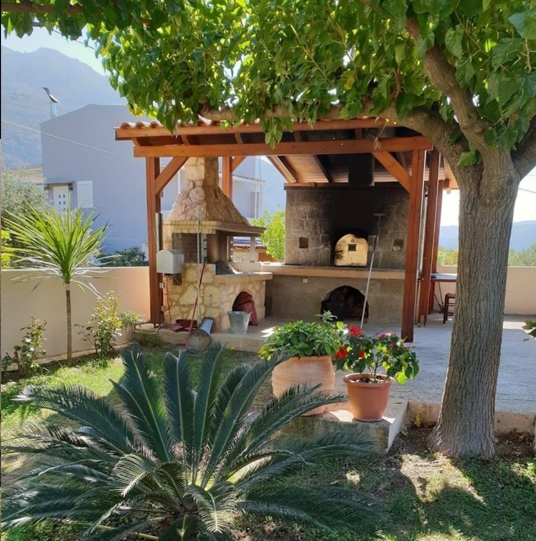 This traditional tavern is ideal for families with children, as it features a garden where kids can play freely, as well as outdoor tables under a charming pergola. The interior is traditionally decorated to resemble a Cretan home, while the garden boasts a lawn. In one corner, you’ll find a well-maintained wood-fired oven and a spit for roasting meats.