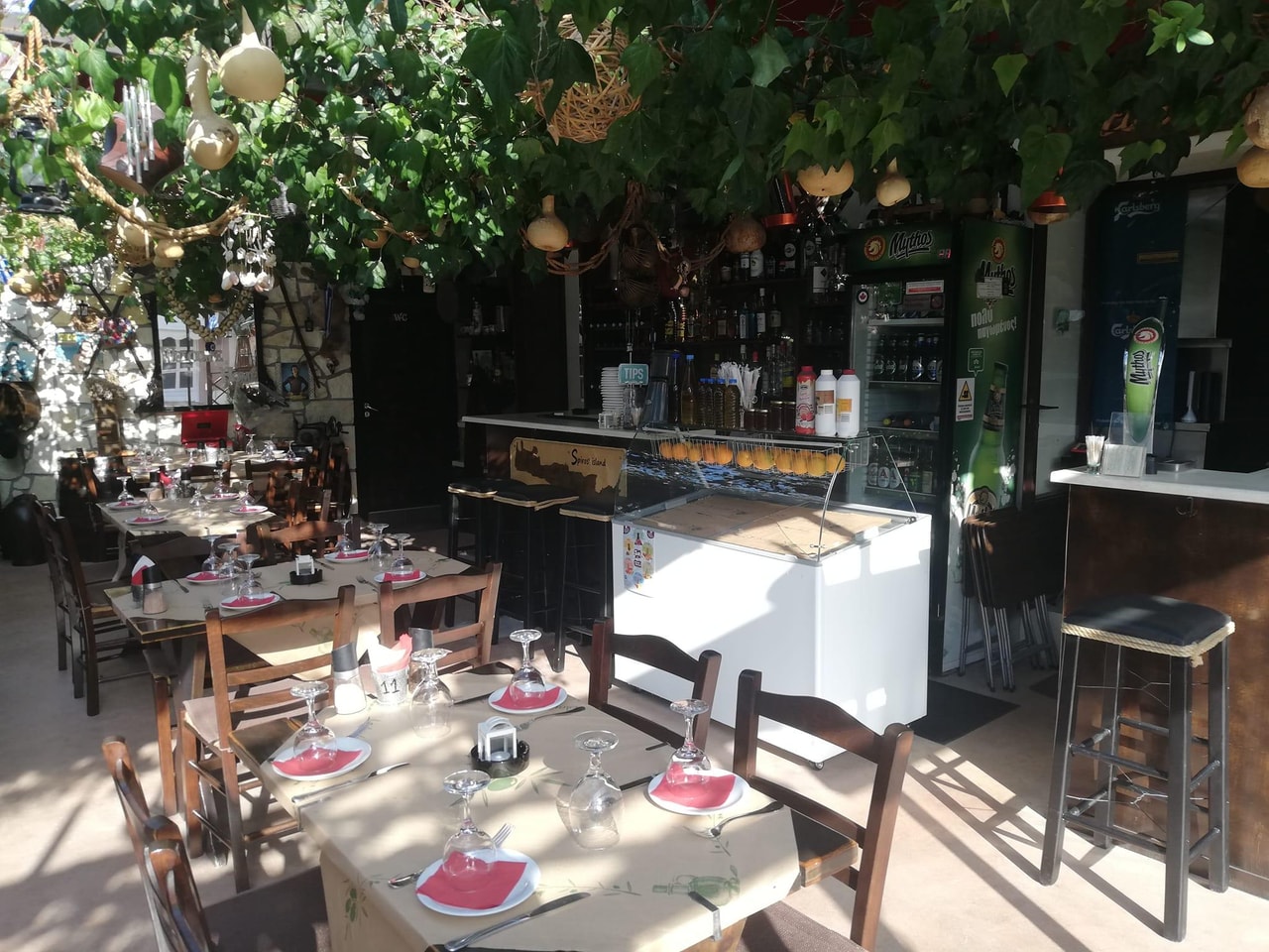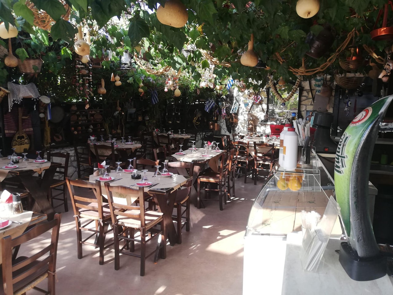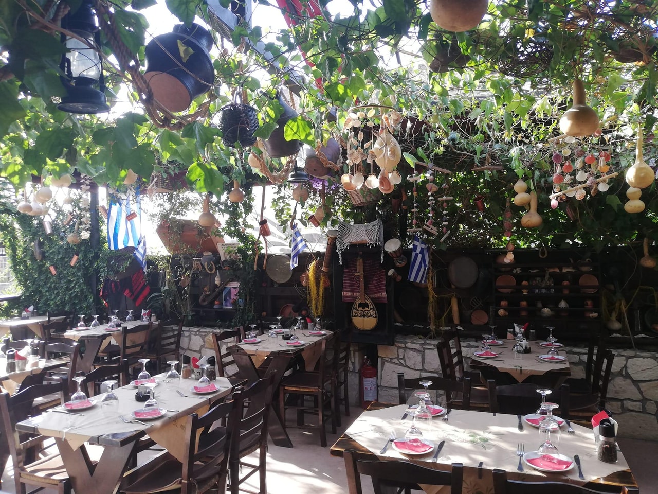 The taverna often hosts live music, and the atmosphere is always electrifying! The space is beautifully maintained, with greenery provided by climbing plants on the roof, charming lighting, and a nostalgic vibe.