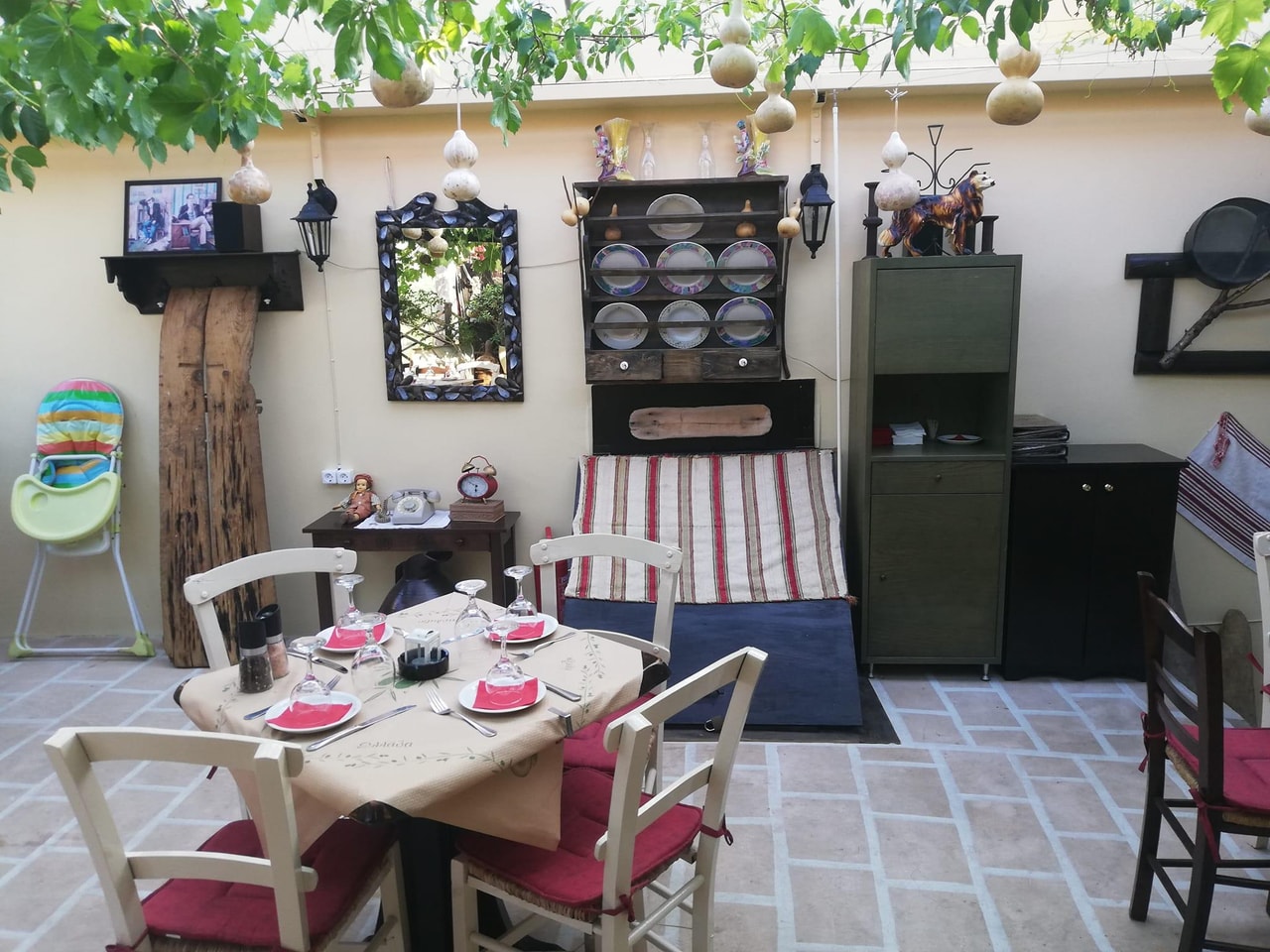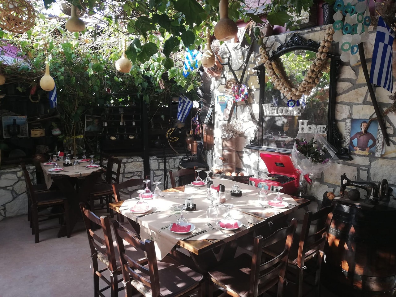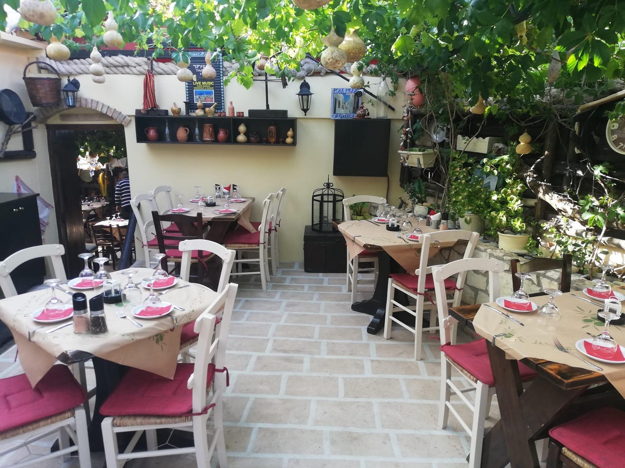 The taverna often hosts live music, and the atmosphere is always electrifying! The space is beautifully maintained, with greenery provided by climbing plants on the roof, charming lighting, and a nostalgic vibe.